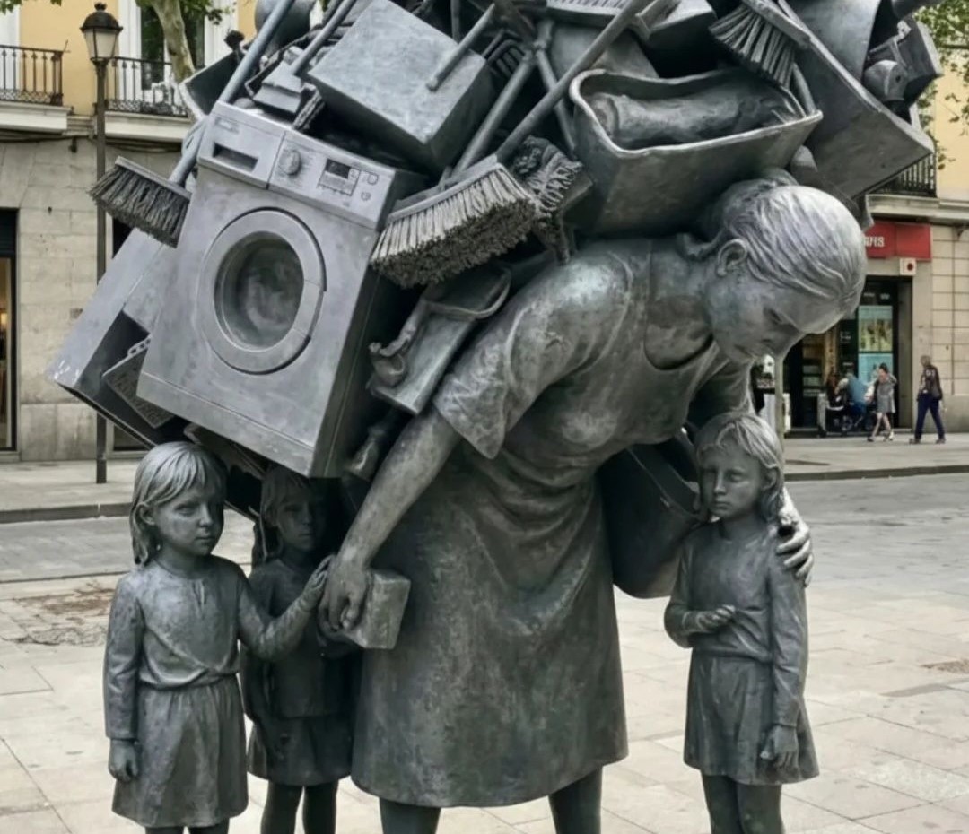 المنحوتة لا تصرخ، لا تحتج، ولا ترفع قبضة. قوتها في صمتها، في انحنائها ذاته. كأن النحّات أراد أن يقول: هكذا يبدو العمل المنزلي حين يُختزل إلى “واجب طبيعي”، وحين يُمحى من سجل الإنجاز لأنه أنثوي، يومي، ومتوقَّع.