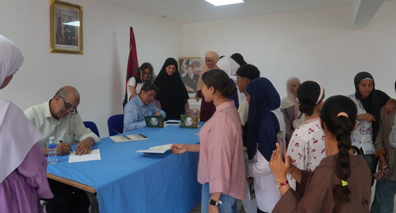اما المخرج المسرحي طارق بورحيم فقد اكد أن: “المسرح هو فن الكائن الحي، والجسد هو لغته الأولى والأكثر صدقًا. موضحا ان الهدف من هذا اللقاء هو الانتقال بالمتعلم من مرحلة الفعل السطحي إلى مرحلة التواجد الكلي والعميق في الواقع، حيث تصبح الطاقة الداخلية هي المحرك الأساسي لكل فعل يومي، مما يخلق تجربة انسانية فريدة ومؤثرة في محيطها، وعرفت الامسية مشاركة فعالة لعدد من تلميذات وتلاميذ ثانوية ابن زيدون، من خلال المشاركة بالقاء محاولات شعرية او القاء مشترك لبعض نصوص ديوان “فلسطينيات” الذي اختتمت الأمسية بحفل توقيعه، حيث تفاعل المتعلمون بشكل لافت مع ضيفي الأمسية، وحرصوا على الحصول على توقيعاتهما في لحظة احتفالية مميزة ودافئة.